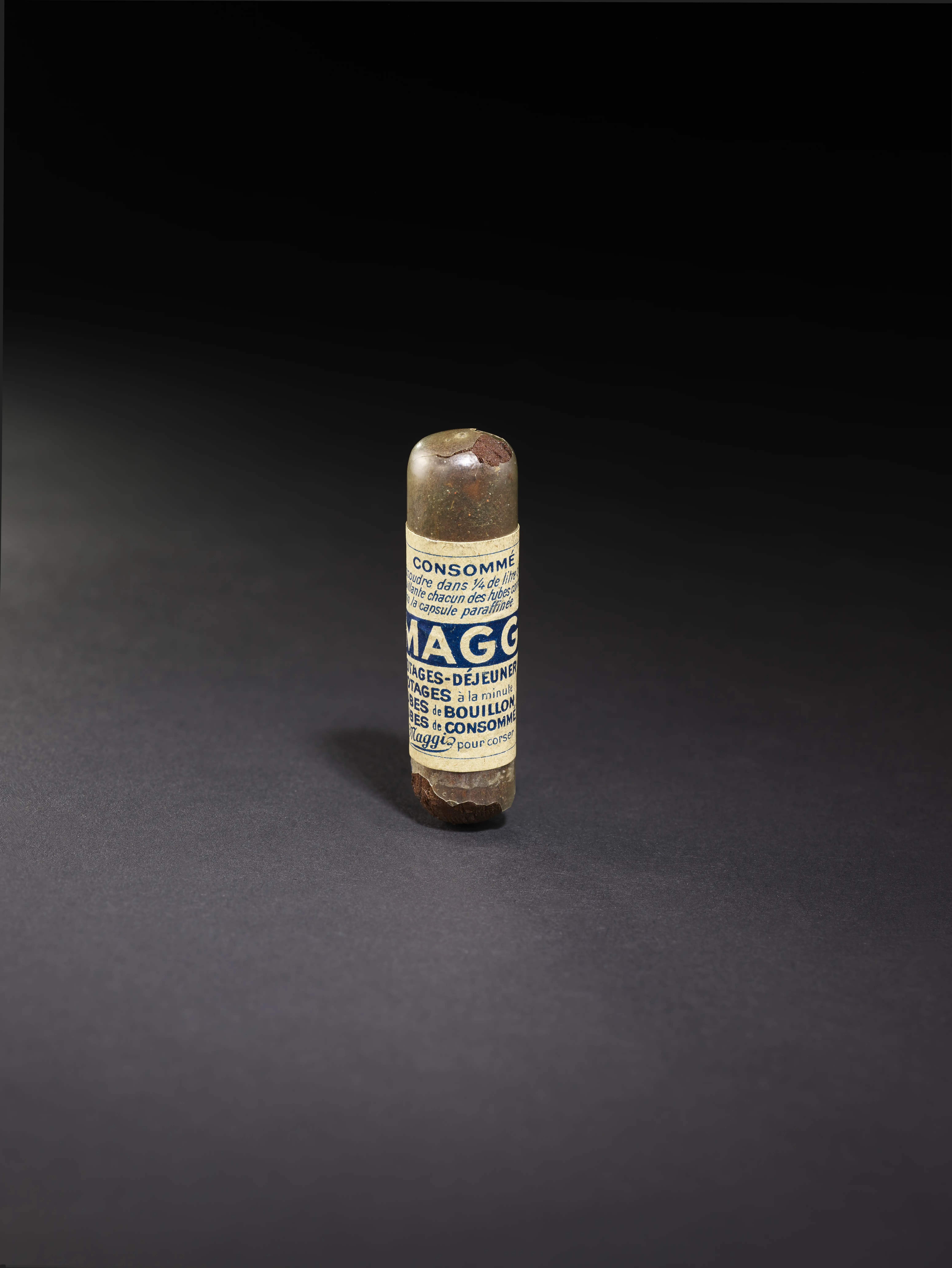 Seit der Erfindung seiner Mehle auf der Basis von Hülsenfrüchten im Jahr 1882 stützt sich Julius Maggi bei der Entwicklung der unter seinem Namen vermarkteten Produkte auf wissenschaftliche Untersuchungen, um ihren Nährwert zu gewährleisten. Während Henri Nestlé sein Milchmehl (siehe AL5054) als Medizin anpries, vor allem durch Veröffentlichungen, nutzte Maggi die Verpackung seiner Produkte, um diese Idee zu vermitteln. So war die Würze-Flasche (siehe AL8321) wie eine Apotheke gestaltet, und die Bouillon wurde in Paraffinkapseln vermarktet, die ebenfalls an die Pharmakopöe erinnerten.
