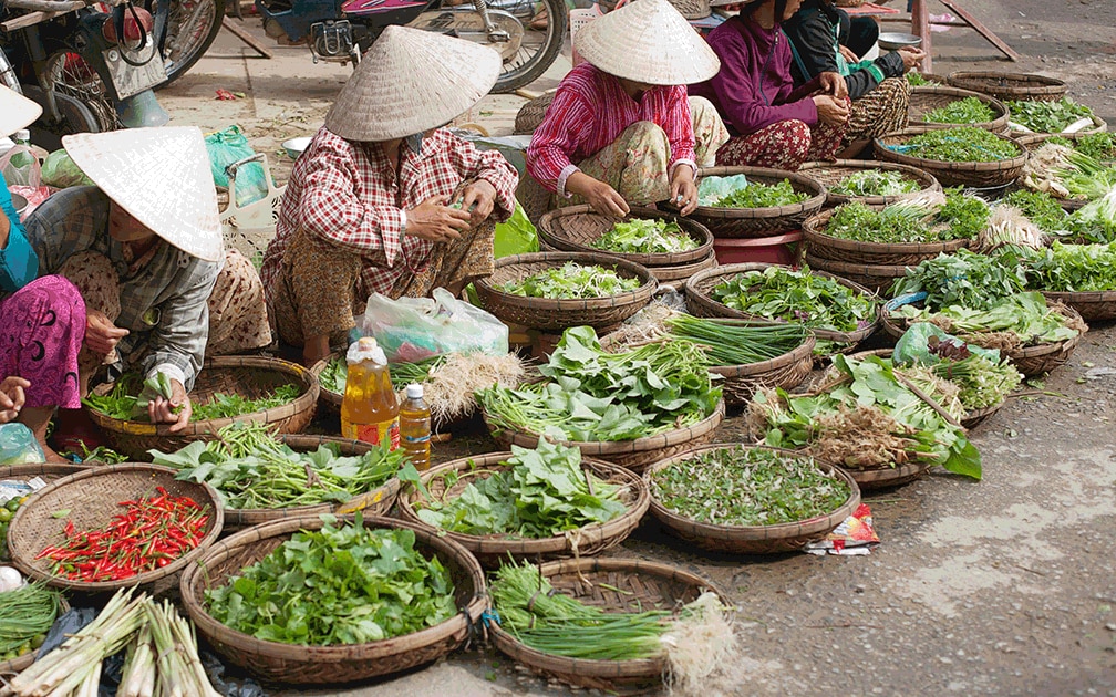 Neben Rindfleisch und Milchprodukten führten die Franzosen auch grosse Mengen neuen Obstes und Gemüses ein: Erdbeeren, Artischocken, Spargel, Lauch, Brokkoli, Karotten, Kohl, Tomaten, Rüben, Rucola ... Dazu kamen Kräuter, die die vietnamesische Küche schnell aufnahm: Dill, Rosmarin, Thymian, Pfefferminze, Basilikum, Salbei.