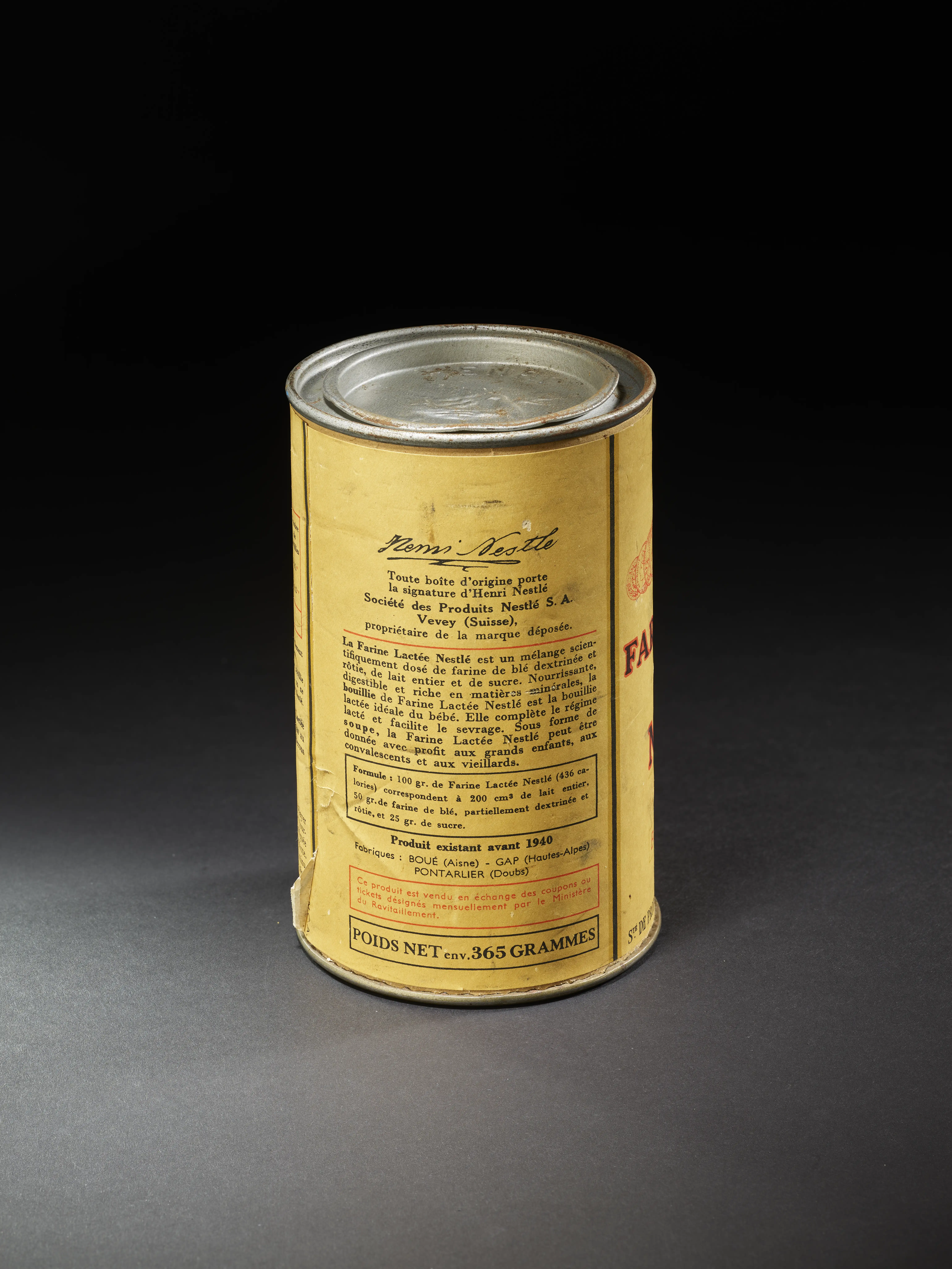 Food rationing was the rule in France from 1940 onwards, in response to the shortages associated with the Second World War and the German occupation. The label on this box reminds us that “This product is sold in exchange for coupons or tickets designated monthly by the Ministry of Supply”. The number of tickets allocated to each consumer depended on age, type of activity, state of health and place of residence. This rationing system remained in force until the end of 1949 for certain products such as sugar and coffee.
